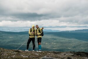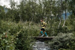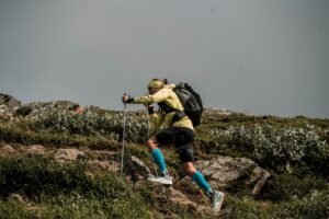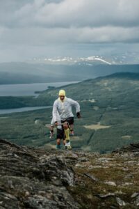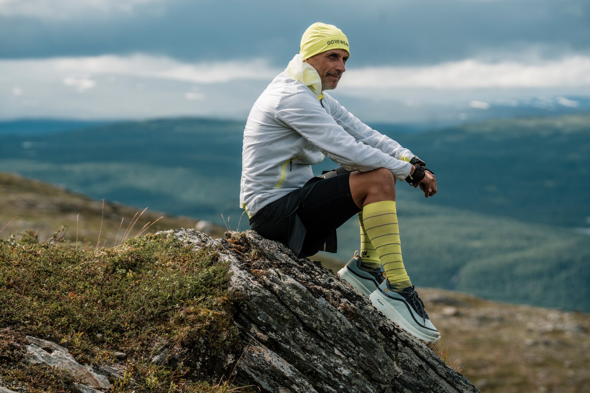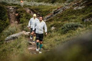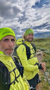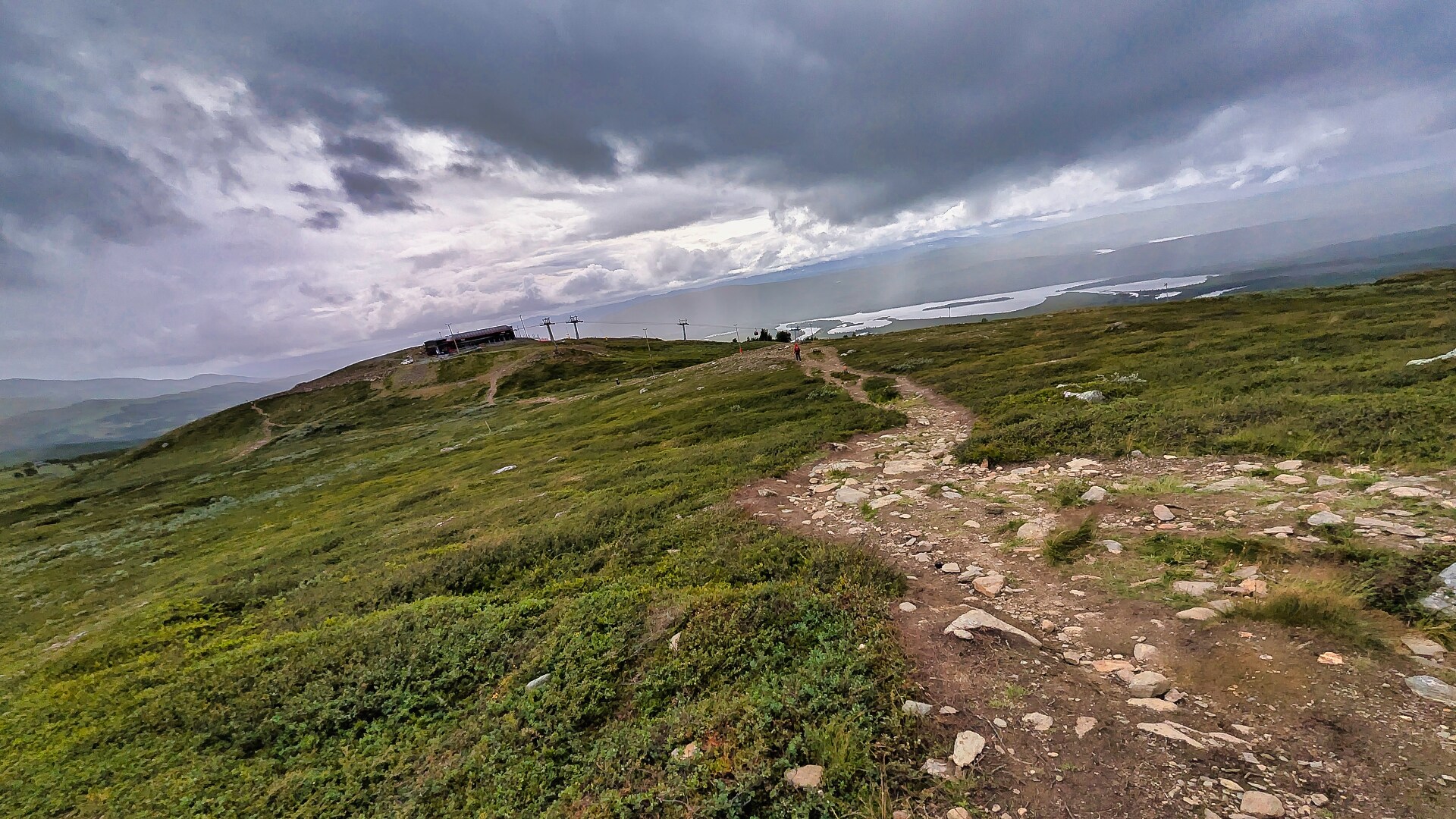 Trailrunning-Klamotten an, Rucksack packen und los in die Berge. Jacob holt uns ab und mit ihm zusammen geht es auf dem Trail hinauf in das Skigebiet, welches wir an diesem Tag zu Fuß erreicht hätten, wenn alles nach Plan gelaufen wäre. Es tröpfelt, aber noch hält das Wetter und es beginnt der Anstieg, der uns nach 1,5 Stunden zur Bergstation führt.
